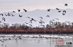 高台迎来候鸟迁徙高峰 生态驿站守护万鸟翔集眼下,正是候鸟南迁的重要时节。位于黑河流域的张掖市高台县湿地保护区,迎来大批迁徙候鸟驻足停歇。天鹅、白鹭、赤麻鸭等多种鸟类在此栖息觅食,构成一幅生机盎然的戈壁水乡生态画卷。(段海 黄鑫) 图为高台湿地驻足停歇的候鸟。 在黑河湿地国家级自然保护区高台段,蜿蜒的河道与开阔的水面已成为候鸟的临时家园。 作为我国候鸟迁徙通道上的重要节点,高台县凭借其独特的水域资源与适宜气候,已成为鸟类途中不可或[ 2025-12-12 ] -