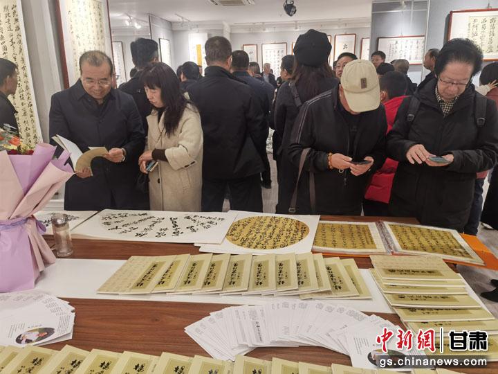 中新网甘肃新闻12月4日电 为期一周的兰州市文艺名家精品展——杨俊旺书法展近日结束,展览期间近万名书法爱好者慕名参观交流。