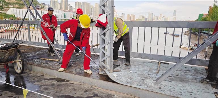 中国甘肃网10月13日讯 据兰州晚报报道 为提升城市基础设施品质,保障市民游客通行安全,兰州市市政工程服务中心于10月11日正式启动中山桥人行道橡胶板更换工程。