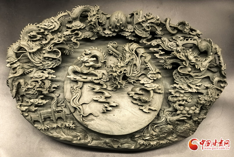 学成归来后,徐哲将南北方工艺精髓融入洮砚创作:雕刻手法从镂空、半镂空转向浮雕,让洮砚既有精细雕工又方便存放;题材上,除传统龙凤外,加入敦煌飞天、黄河风情等地域文化元素,赋予洮砚更多文化内涵。