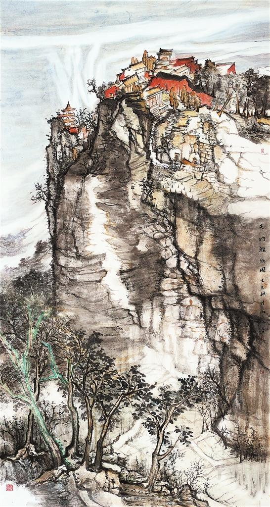 天门胜景(中国画)索雨红