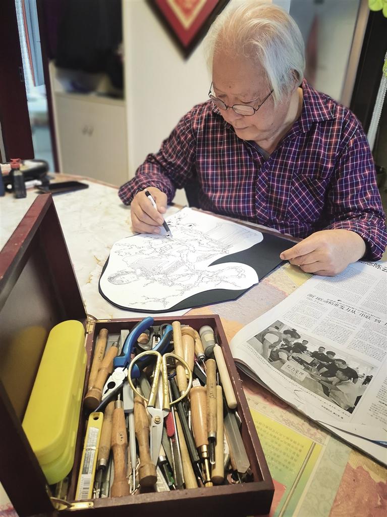 谈到创作过程,他眼神中闪烁着匠人的严谨光芒:“剪一个好作品,首先要有一个构思,然后再把它画出来,再去动剪刀、刻刀各种工具。” 在他这里,剪纸绝非简单的“剪花样”,而是严谨的艺术创作,是“胸有成竹”后的“运剪如风”。